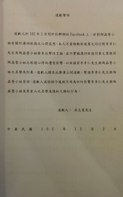 並不實稱澳洲旅遊同業之業務因此而大受影響,特此公開道歉。