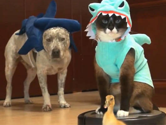 第4名:Cat Wearing A Shark Costume Cleans The Kitchen On A Roomba