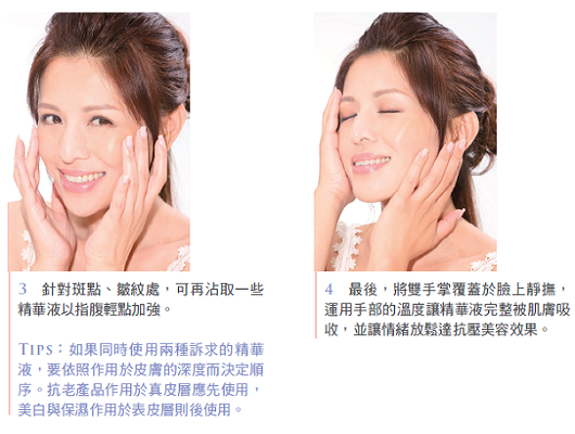 我認為可從生活模式及皮膚轉變選擇。以生活模式來說,此世代女性通常身兼多職而過著忙碌生活,一瓶多效的標靶型保養將是主力,「精華液」將是此世代女性必備保養品;而隨著年齡增加,輕微的肌膚乾燥現象開始出現,不妨使用「面膜」當作忙碌生活中的輔助保養品。在這個彷彿與少女階段告別的分水嶺,只要順著自己的步伐前進,維持一貫的自信,並且學會用保養愛惜自己,「下一站‧30」,一點也無需擔心!