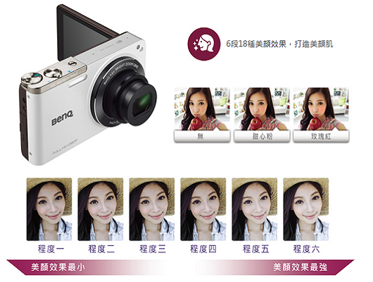 將我們所習慣的APP的美顏模式貼心結合,BenQ G2F內建的「6段18種美顏效果」,不僅可以讓妳隨著當天的燈光與妝容,美白膚色、掩蓋瑕疵,調整由強到弱的6階段美顏效果,還可以佐以搭配3種不同的腮紅模式,呈現出18種的美顏奇蹟。