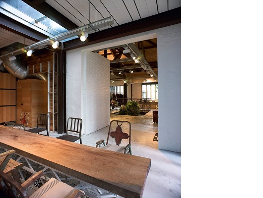寬敞的空間,在挑高的兩層樓中庭佈置綠意,木質觸感搭配的是金屬氣管,衝擊又有創意。
