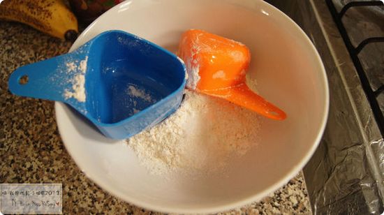 2. 取另一個空碗放入麵粉跟鹽巴稍微拌勻