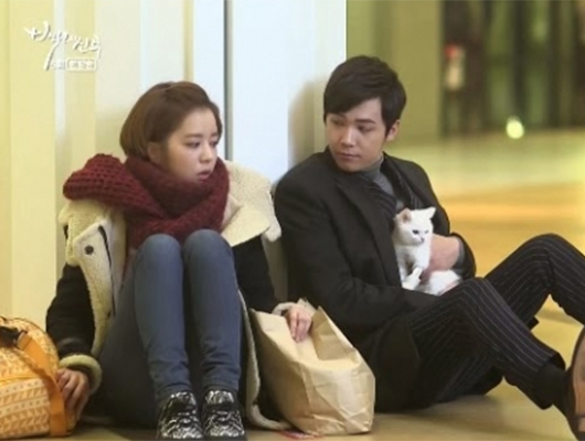 其實這張也是有巧妙的情侶穿搭,一樣是黑色系外套,只是男主角穿著西裝,而女主角則是穿著休閒大衣,在這一幕造型師雖然特地打造出兩人地位與身分的不同,從皮鞋&運動鞋、西裝褲&牛仔褲、西裝外套&休閒大衣等的不同,但從畫面看來兩人的色系仍是十分相合喔!