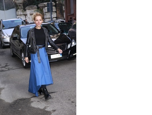 搭配皮外套,讓甜美跟帥氣mix在一起,就很有個性。