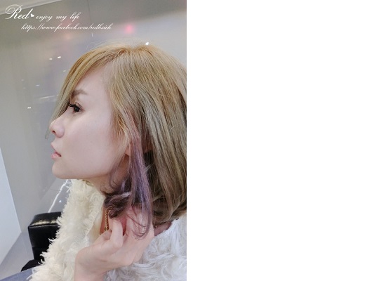是粉紅色和紫色的小小兩搓,雖然大部份時間它們會藏在裡頭 (因為我都是勾耳後)但是有著俏皮的顏色在頭髮上看到就覺得挺可愛♥綁頭髮的時侯就能讓它們露露臉囉!!