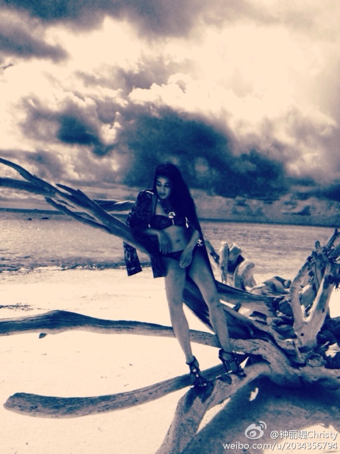 鍾麗緹日前在微博秀出寫真照,雖然已經是3個孩子的媽,但身材依然保持的很好,還展現軟Q筋骨。跟女兒們出去不像母女,反而像姊妹。她說:「我們是不是很幸福,有這麼漂亮的地方拍攝,The Residence Maldives酒店真的好舒服好美,還有Baby鯊魚都來給我加油,我可不要下水啊,我怕鯊魚咬我屁股噢。」