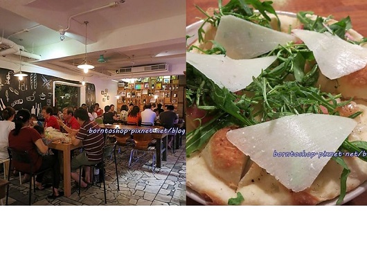 開放式廚房考驗廚師們做菜的能耐,看著四位廚師各司其職,非常流暢地做出一道道美味的餐點,害我忍不住一道道加點,現場雖然單子很滿,但內外場人員配合的相當好,一丁點臨近失控的場面都沒發生。首先上的是芝麻葉帕瑪火腿薄餅,芝麻葉、橄欖油及帕瑪火腿加在一起真的是好吃到不行,尤其是如此實惠的價格,多點幾盤都不是問題!