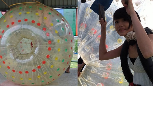 這次去一路從高雄玩到墾丁,是我覺得記憶中去墾丁玩最開心的一次了!這次的遊戲真的跟以往不同!因為同學吵著死都要玩這個遊戲,所以我們兩個也只能硬著頭皮上了!沒錯,等下就是要在這個大球裡面,被五花大綁,然後被工作人員推下去草地上!我只能說他們的廣告的標語說的很好!就算是英雄豪傑,也會尖聲驚叫,即便公主閨秀,難免發瘋起肖!