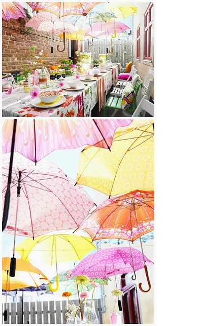 看~!將繽紛的雨傘懸掛起來,不僅有遮蔽陽光的效果又能保持光線亮度,根據不同派對主題還能選擇不一樣的雨傘花色!保證賓客嘖嘖稱奇!