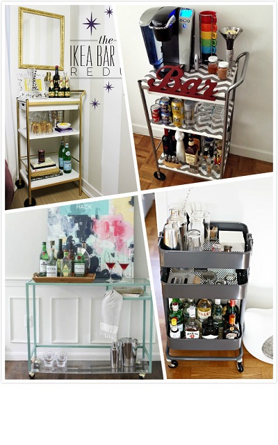 不是每個人的家裡都能裝潢個美美的吧台,但只要善用既有的道具,例如廚房推車、梳妝台、搭配上一些裝飾,一個行動吧檯就出現了!!