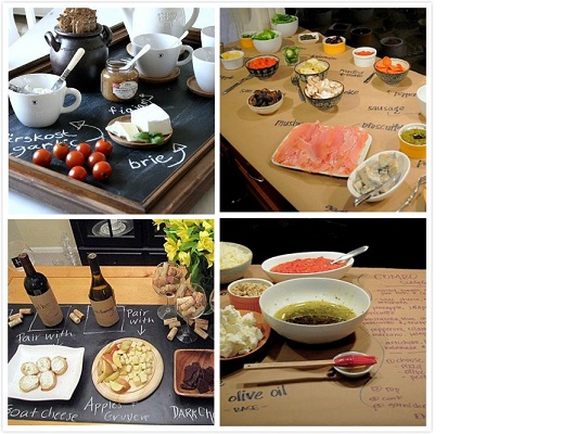 既然如此,為了省下跟朋友翻臉的麻煩,就事先把各種答案通通標示在食物旁邊吧!只要把黑板/軟黑板墊在餐盤底下,或是鋪好上我們最容易取得的牛皮紙!這時候妳愛怎麼寫就怎麼寫吧!不管是餐點名稱、食材來源或是食用方式,還可以開放讓客人留言作畫,成為派對的小紀念品歐~