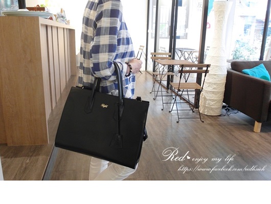 黑色大方包在整體中置入了正式及硬挺的質感!