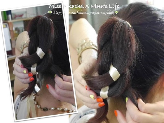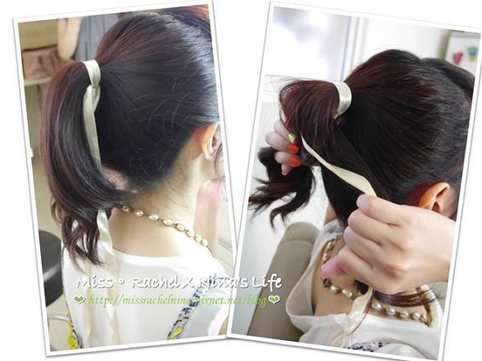 緊接著進入第2招~綁好馬尾後拿出一條白色的髮帶