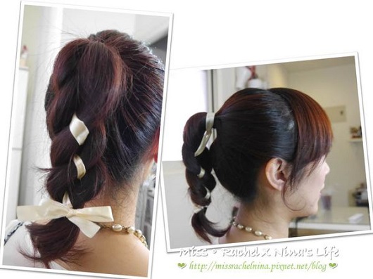 把多餘的髮帶剪掉後,超有氣質的髮帶馬尾就完成拉!!