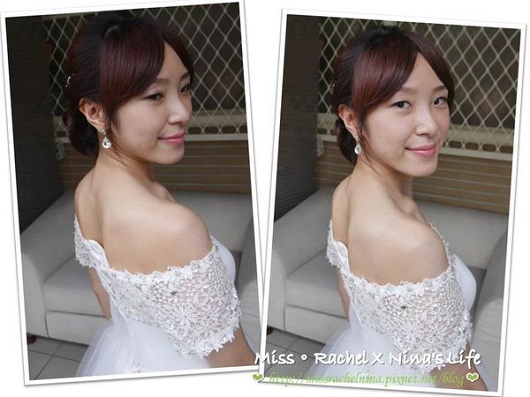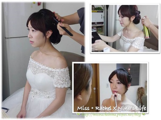 對!!因為Nina長得很像韓國人 (是很多人認為的~不是我自賣自誇歐),所以這次也想走韓風的新娘盤髮,中間過程就省略了不重要,反正新娘做在那給別人弄就好,讓我們直接看結果!!