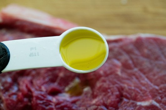 1. 牛排兩面抹上橄欖油