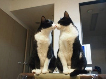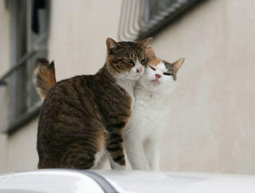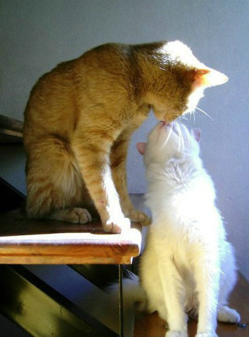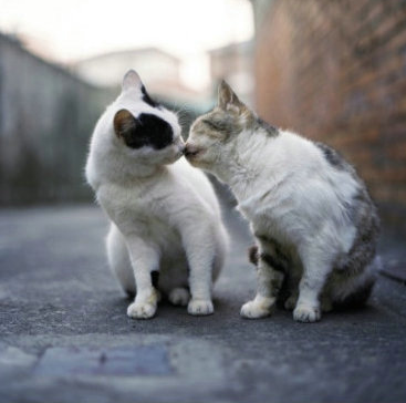 看完這幾張照片,小編不由自主想起電影史瑞克裡頭的鞋貓劍客(就是很會把妹的那隻),在貓貓世界裡,原來也會互相親親秀愛意。