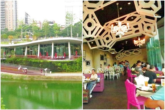 QQ槿:台中一日遊,口袋名單秋紅谷的白天與夜晚擁有不同的美貌,就在思考要如何可以相遇白天與夜晚時 原來~紅秋谷內有一間適合舒服享用餐點又適合停留秋紅谷的【幸福小水舞】 。