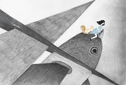 欣蒂小姐:「曾經在自己對未來徬徨的時候畫了這幅畫。結果竟有粉絲留言,謝謝我的畫,讓她決定鼓起勇氣告白。」從來沒有想過自己純粹的情緒抒發,竟然有可能改變另一個人的生命。真的很感動,也得到很多力量…」