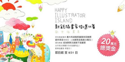 快來使用你過人的插畫技術突破重圍、用畫筆搭配超凡好梗擊退群雄,登入歡樂插畫島!挑戰成功,將有機會獲得義大利波隆那畫展來回機票、創作獎金等獎項,比賽總獎金高達20萬元!第2屆的新銳插畫家徵選比賽,即將倒數>>