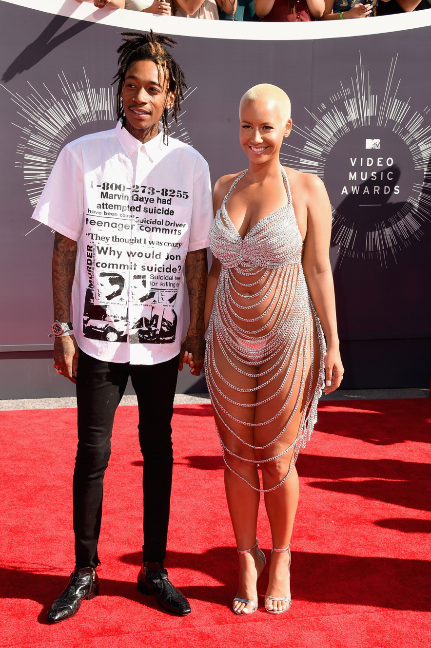 6. 安柏蘿絲就是一個以裸體走上這紅地毯的例子,她身上的衣服基本上不是洋裝,那只是一個珠簾而已,想想身上實際的布料差點要比碧昂絲的耳環還少,就讓人感到心驚,不過,最妙的是她老公身上的襯衫,那上面有防治自殺的相關資訊(這麼關心大眾應該叫你太太不要穿那件啊)。