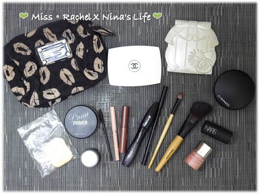 以我來說:粉底液,蜜粉/粉餅,眉筆,染眉筆,睫毛膏,腮紅,眼影,眼線筆,腮紅,隨身鏡,刷具,唇膏