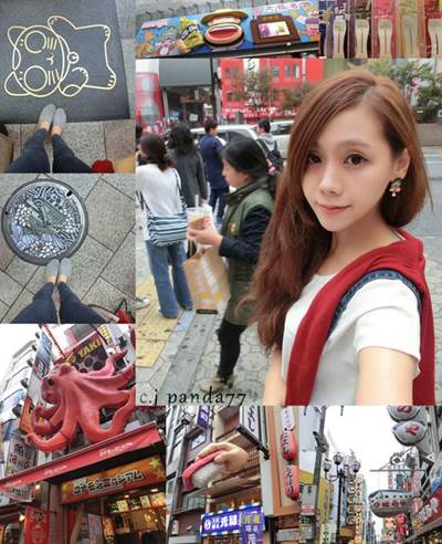拖著行李箱的賊賊按照慣例逛逛道頓堀,這裡有很多特色地磚和超厲害的立體招牌,這是這裡的名物喔!還有人人必拍的固力果招牌!