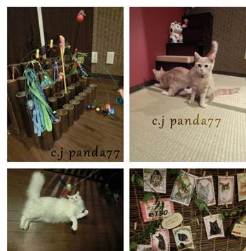 店裡還有各式逗貓棒隨意可玩弄他們,但他們應該是玩膩了~不是很有興趣=_=還有榻榻米區給貓磨爪給我們看書玩貓的!另外販售手繪貓咪明信片,每張都很可愛我買了3張!
