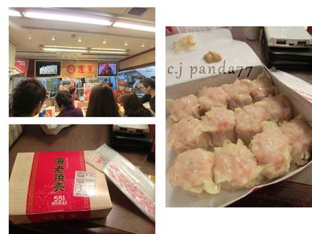 有半熟和全熟可以選,我買了爆漿的半熟!!但是我還是比較喜歡起士爺爺耶!累爆的賊賊在傍晚要趕緊回機場日航酒店了,因為我們這個一天停留班隔天一大清晨就要起飛了(累斃了)~所以晚餐我去排外帶蓬萊551的海老燒賣回飯店吃~(查到大家很推薦這個)~