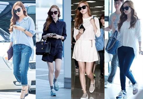 少女時代在各地機場每每出現都會造成話題,其實潔西卡的穿搭總是簡單俐落,卻好看得令人印象深刻。先前鄭氏姊妹的實境秀中,她也大方分享自己的穿搭秘訣:「連身裙和簡約風」。仔細一看她真的是連身裙的愛好者,牛仔褲搭配素色的上衣或襯衫,跟她一起套上球鞋舒服有型的上飛機吧!
