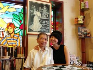 許茹芸與韓籍老公崔栽誠新婚9個月,9月12日將在韓國舉行婚禮。女生這輩子都有兩個情人,一個就是自己的丈夫,另一個就是自己的爸爸,她在微博說:「第一次帶爸爸去他最愛的「極品西服」訂製西裝,看著爸爸認真的試穿每一件我幫他搭配的衣服..真的好可愛!!爸爸開心的笑著說:感覺像是回到年輕時,要準備打扮外出約會的心情…看著他淺淺的笑容,我的內心好踏實..:) 他單純的眼神,似乎沒有因為時光的流逝而失去了什麼。打上藍色啾啾的許爸有帥帥嗎?」