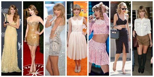 穿搭重點:鄰家鄉村女孩捲髮,牛仔靴,迪士尼公主造型2006年以同名專輯《Taylor Swift》驚豔歌壇的泰勒絲才16歲,大大的捲髮,加上牛仔靴,出席頒獎典禮時也以像是迪士尼公主般的隆重造型出場。或許因為年紀輕輕,再加上以鄉村歌手出道,自然而然大家也不會太苛刻,畢竟,年輕就是本錢,不太差的造型都可以用「可愛」帶過。