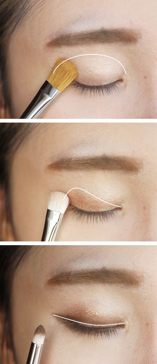 接下來就來看圖說故事眼妝分享啦!!1. 先用淺色系眼影,打底整個眼窩。(使用MAQUILLAGE 眼影( BE32)3最淺色)2. 再用棕色系蓋上,畫法從接近眼頭處畫到眼尾,然後往回勾。(韓國ARITAUM mono eyes眼影 (NO.25))3. 再來用最深的咖啡色蓋上,在接近睫毛處像眼線一樣畫一條線,再用眼影刷暈眼一些有漸層感。(JILL STUART 眼影 (106 captured sardonyx) 最深色)