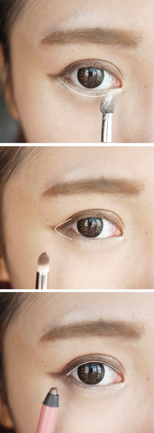 下眼影的部份也很重要1. 用淺亮色系的眼影,畫滿整個下眼線,打造假臥蠶