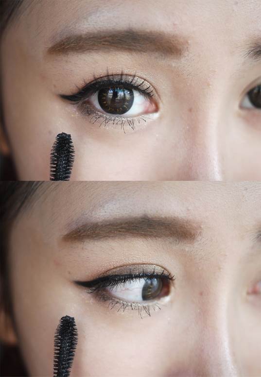 外眼線液不只畫眼尾,是從頭拉到尾唷!!然後下眼睫毛的部份是用了二隻睫毛膏,所以眼妝看起來會較濃一些!