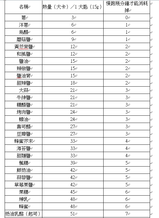 (唉其實凱薩醬是小編的心頭好,真的想吃的時候會請店家把醬放在旁邊,沾著吃而不要整個淋上去,否則想減量都沒辦法…>”<)那麼麵包怎麼辦呢?不能塗瑪琪琳,那果醬、花生醬、大蒜醬、起酥醬呢?很遺憾,這些醬料的熱量一樣很高。
