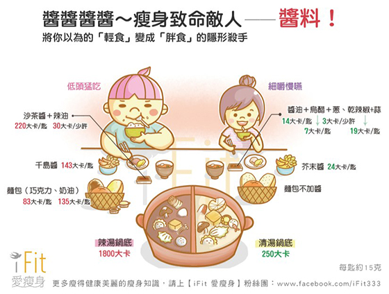 生活中有很多食物,既非焗烤、炸物、勾芡,也不是丸餃等等加工食品,為什麼熱量卻高得嚇人呢?原因就出在那油死人不償命的「醬料」啊!