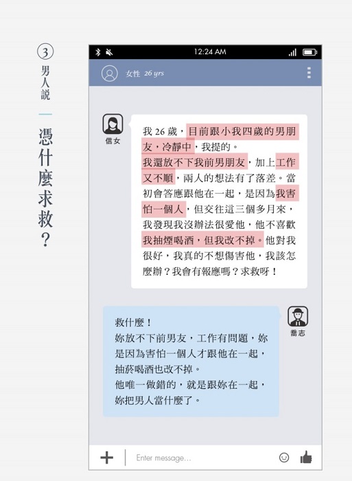 本文出自《喬志先生愛情診斷室:一句神回覆,強過千言萬語的苦勸》時報出版