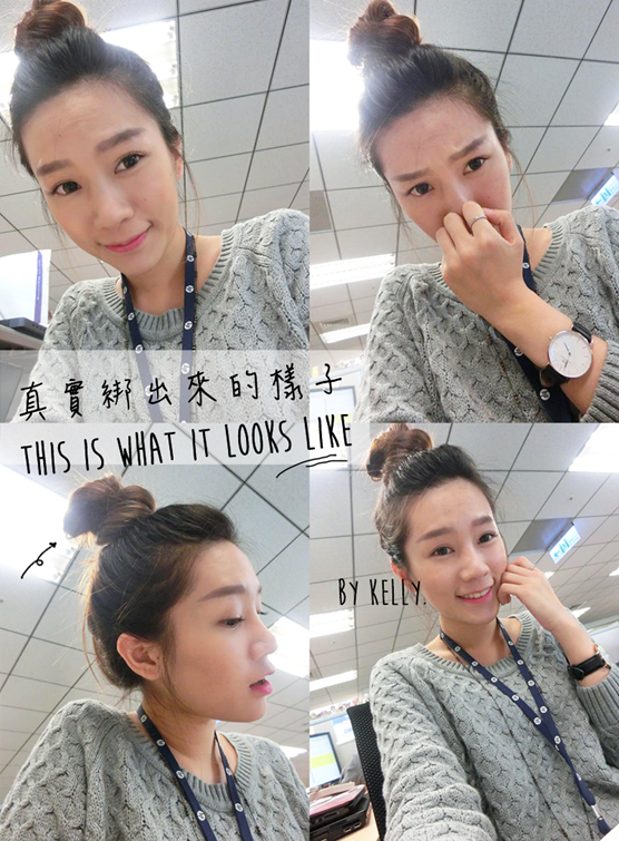 下一部影片妳們就會發現了然後~~~江江江講~!就完成啦!!!非常快速吧,我就是這樣綁包包頭,不需要任何的夾子唷~