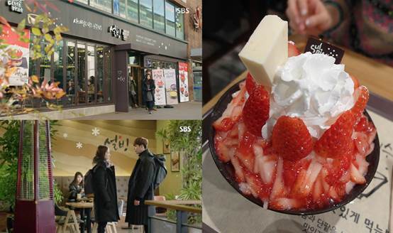 「皮諾丘」劇中可以說是每一集都有露出「雪冰」的畫面,無論是開會、聚餐、談事情…主角們都會記得來這裡,LOGO更是無所不在畫面中,這一家從釜山起家現在已經超多連鎖店的傳統雪冰店,明洞.建大.梨大都是同一個地區就開好幾家分店,雪冰其實賣的就是我們台灣吃的雪花冰,人氣招牌是花生雪冰和花生麻糬吐司,就算冬天不喜歡吃冰的朋友,這裡還有販賣許多甜點和有機茶飲, 朴信惠拍攝期間感冒了,還在自己的SNS放上一張「雪冰」的梨子桔梗茶與劇本照,是不是非常稱職的女主角呢~