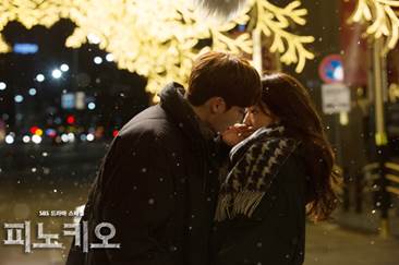 最近收視和話題都夯翻的「皮諾丘」由朴信惠(飾演崔仁荷)和李鐘碩(飾演奇河明.崔達布),懷抱想成為記者的實習記者之路,四個主角都清新的要命叫人怎麼能不乖乖收看,第一次讓我感到羞羞臉的居然是仁荷爸爸的幻想情節,這場兩人出門前的吐司之吻,要吃不吃…要親不親…不知道牽動多少少女的心,另外這一場搭配著冬季初雪拍攝的吻戲,拍攝地就是在明洞新世界百貨旁邊,當時明洞晚上充滿著聖誕街頭點燈慶典,拍起來畫面好美,當時我也在韓國,可是是初雪隔天我才去明洞的~飲恨啊!