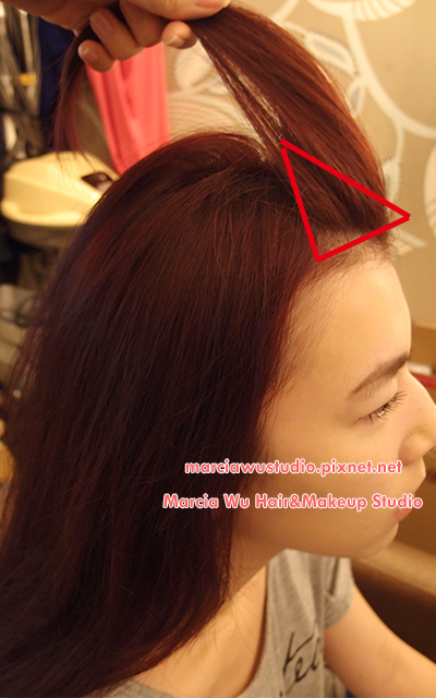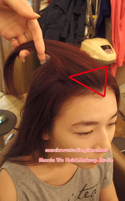 首先將瀏海部分的分區出一個小三角形的髮量。