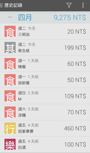 3. 可以詳細記錄每一項花費的內容