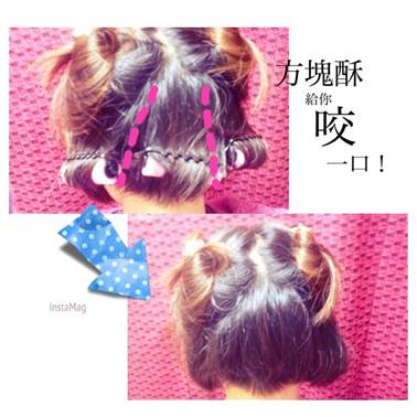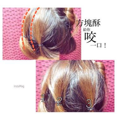 3.之後將下方頭髮分三區,先燙正中間後兩側,燙的方法就用電棒燙夾住髮束正中央,往下滑直到髮尾後往內捲半圈,捲住髮尾後數到5再放開換另一區,三區都要各燙兩遍喔!(或髮尾向內捲上細小管的髮捲,用吹風機吹乾,但比較不會像電棒燙效果那麼好啦~)4.捲完會像圖下方這樣比較往內Q