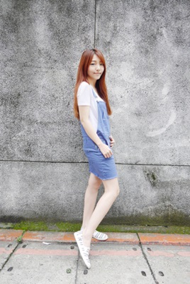 我平常喜歡穿像這樣的休閒穿搭,簡單的素色上衣配上藍色吊帶褲,感覺很青春洋溢,一瞬間好像年輕了好幾歲吶哈哈哈哈哈哈哈,而且這款還有個小巧思,就是有方便後腳跟可踩的設計, 2 ways的小巧思~讓我可以不只穿脫方便,也能輕鬆穿搭,重點是這樣又更蘇胡啊~~而且吊帶褲下擺有不規則邊緣,配上我的鞋子,都是簡單中帶點變化!