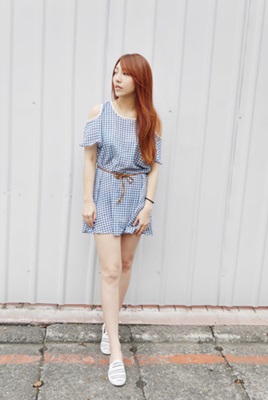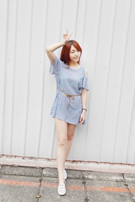 最後再搭一個屬於比較有女人味的洋裝!利用皮帶飾品來讓比例變好,而且挖肩的小洋裝看起來有點小小的誘惑,再搭上不用綁鞋帶的鞋子,整體感很清新又有點小誘惑啊啊啊啊~~~~~~(怎麼這麼衝突啦相信男生們知道我在講什麼)