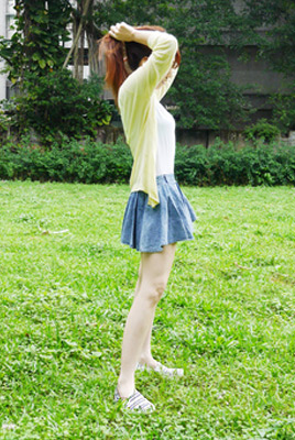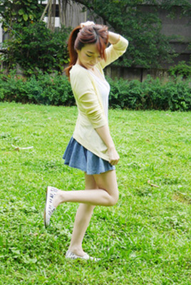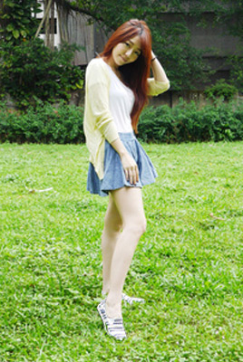 再來是我很喜歡的傘狀小短裙(或是小褲裙),夏天很熱我會穿這種的衣服比較散熱,看起來也很陽光俏皮,記得要把衣服紮進去,然後搭配這雙鞋,感覺腿的部分就有視覺延伸,變長了!!而且也增加了整體的小亮點!!