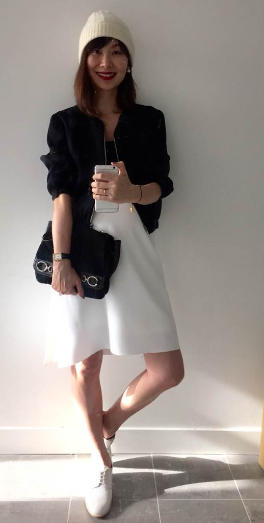 ~~~最後,當然要以經典的黑白配結尾。內穿黑坦克背心、運動風外套,把袖子推到手軸形成氣球袖,增加立體感、且有小臉效果。白帽是造型&高緯度國家夏天適用,在台灣視情況以免中暑。。。黑坦克背心、運動風外套、兩片式開岔白裙、灰牛津鞋/皆為giordano ladies。本篇雖仍廢話不少,還多了老師上身的感覺。。。畢竟,我也當了多年的黑白人,還算清楚黑白配如何不費力、不老梗,姑且讓我老師一下吧。。。^^此篇文章出自→eggwhite.co