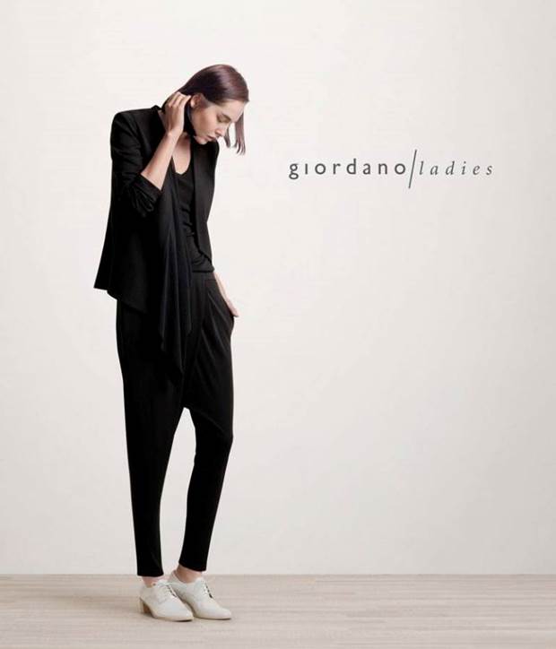 拷貝形象廣告: 長版不對稱黑罩衫+白九分褲,除了褲子皺了點,穿起來的味道,的確蠻像的,切合主題,不費力的時尚。不對稱黑罩衫、白九分褲、灰牛津鞋/皆為giordano ladies。