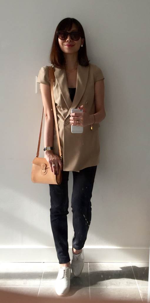 坦克背心,可跟任何外套做層次感,是夏天良伴。黑坦克背心、狩獵風西裝外套、黑色Leggings、牛津鞋/皆為giordano ladies。